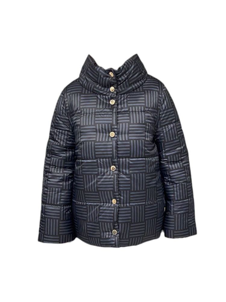 PIUMINO REVERSIBILE CORTO CON COLLO CRATERE, DA UN LATO FANTASIA E DALL'ALTRO TINTA UNITA